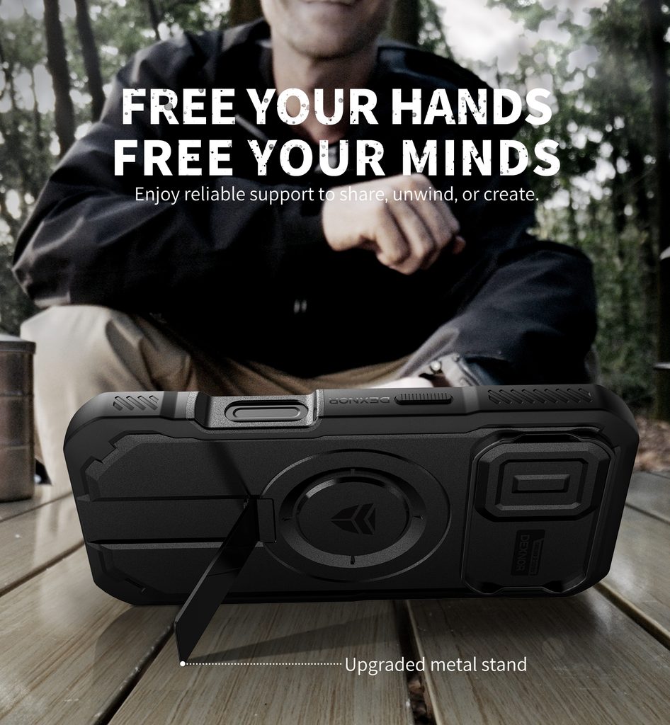 Etui podjetja Dexnor zagotavlja odlično raven zaščite za vaš telefon. Konstrukcija je zasnovana z dvojno plastjo hibridne zaščite, ki zagotavlja popolno zaščito vašega telefona iz vseh kotov. Etui je odporen na udarce, padce, poškodbe in praskanje, poleg tega pa je združljiv s tehnologijo MagSafe, kar omogoča enostavno in hitro brezžično polnjenje brez potrebe po snemanju etuja.