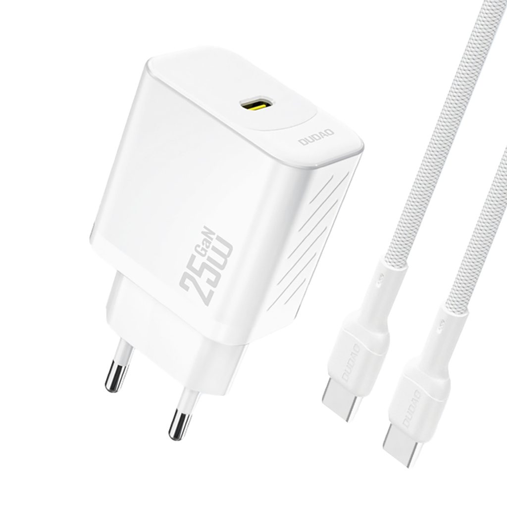 Dudao A27CEU polnilnik USB-C + kabel USB-C - USB-C, PD 25W GaN, bela