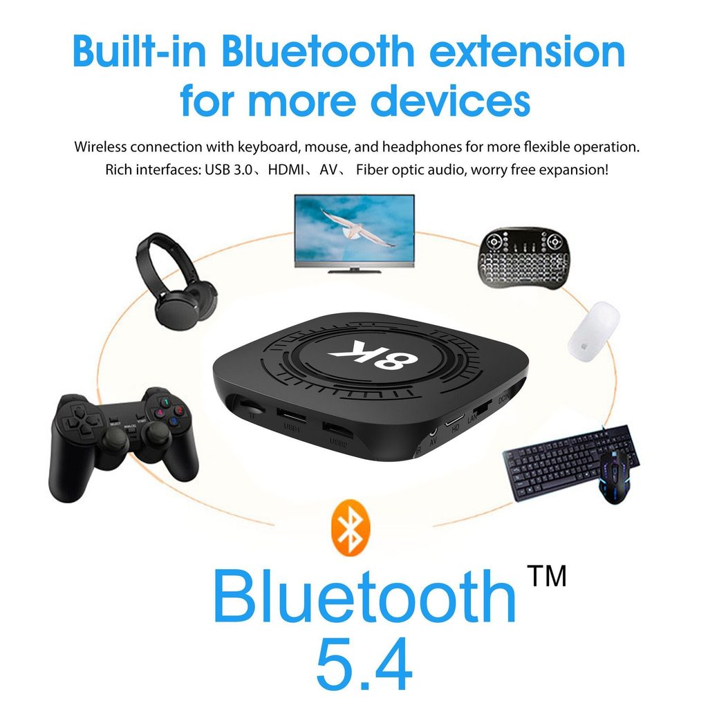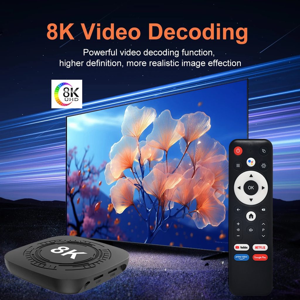 MX10 8K PRO je zmogljiv Android TV Box, ki navadno televizijo spremeni v polnopravno Smart TV. Zahvaljujoč sodobnemu sistemu Android 14, visoki zmogljivosti in podpori 8K ločljivosti si lahko privoščite pretočne storitve, aplikacije, igre in internet neposredno na velikem zaslonu.