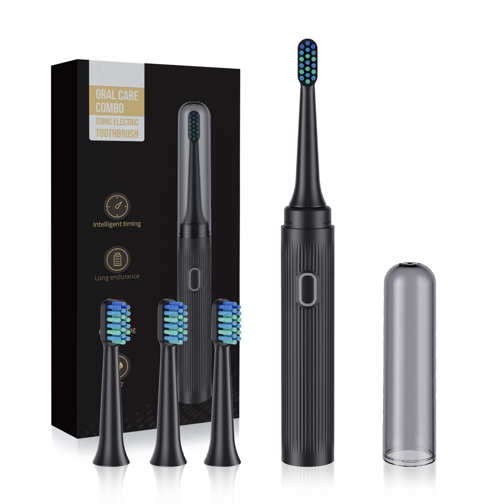 Sonična električna zobna ščetka s kompletom 4 nastavkov in potovalnim etuijem, 5 režimov, 30.000 vibracij/min, črna